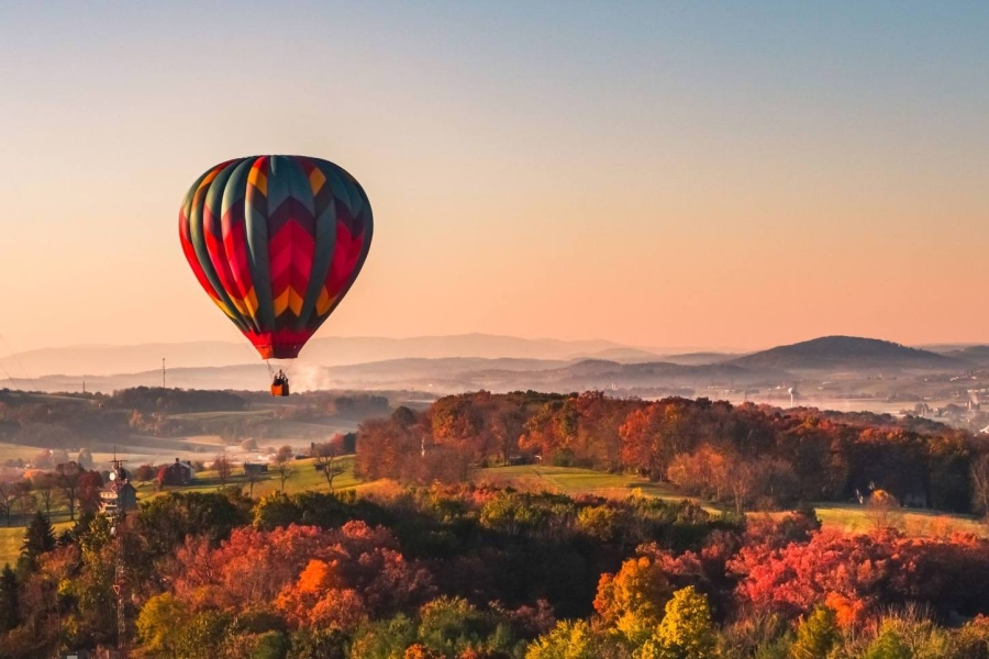 Der berühmte Fernwanderweg punktet nicht zuletzt auch mit optimalen Bedingungen für Mountainbiker. Für ein ganz besonderes Erlebnis wagen sich Reisende in luftige Höhen: Bei einer Heißluftballonfahrt eröffnet sich ihnen aus der Vogelperspektive ein ganz neuer Blick auf die bunten Baumkronen.