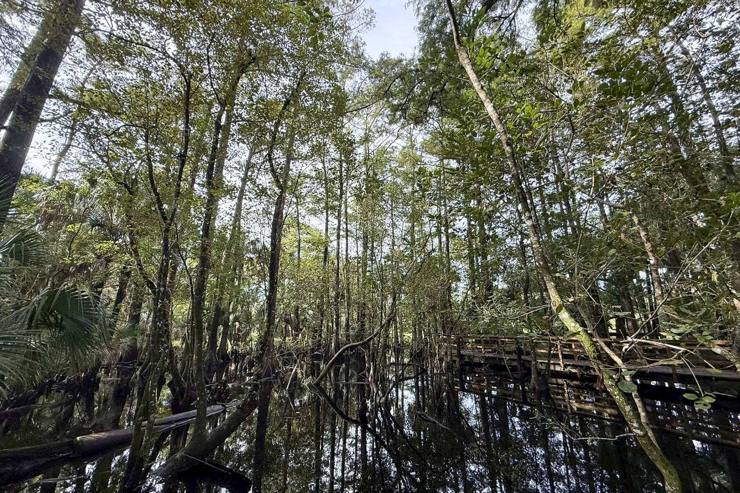 Das absolute Highlight dort ist die 90-minütige Swamp Buggy Eco-Tour, die wir jedem empfehlen. Man steigt in einen umgebauten, offenen Schulbus mit riesigen Reifen – den klassischen Swamp Buggy – und rumpelt durch vier verschiedene Ökosysteme: Palmetto-Prärie, Pine Flatwoods, Freshwater Marsh und den beeindruckenden Telegraph Cypress Swamp. Die Guides sind oft Locals, die hier aufgewachsen sind; sie kennen so gut wie jeden Alligator beim Namen und erzählen von der Ranch als wäre es ihre eigene. Man kann Touren mit über 100 Gators erleben (besonders in der Trockenzeit, wenn sie sich sonnen),