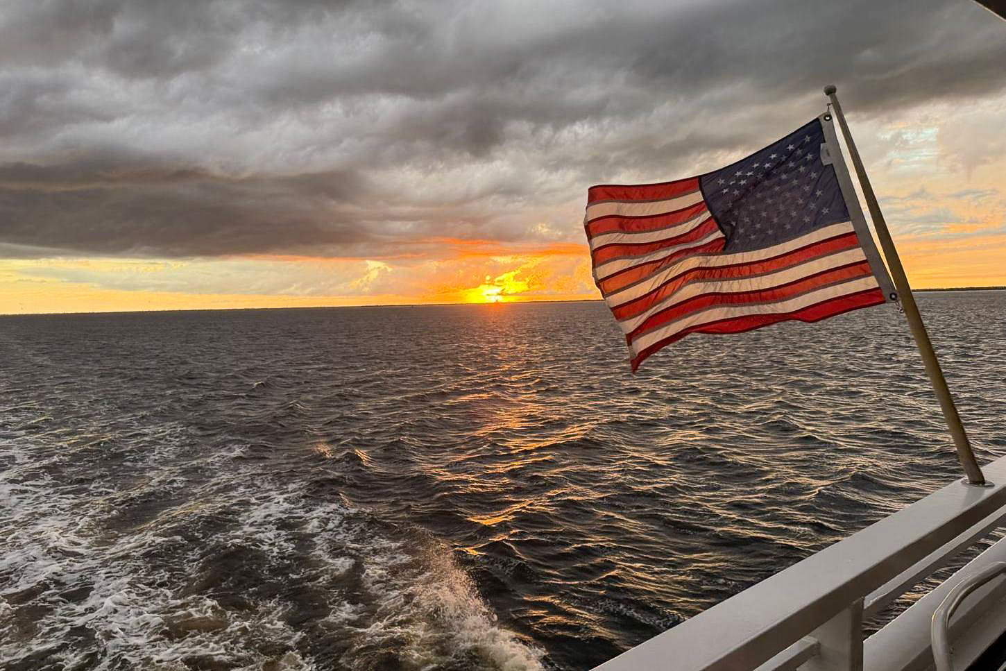 Den perfekten Abschluss des Tages in Punta Gorda bildete eine Sunset Cruise mit der King Fisher Fleet, die vom Fishermen's Village startet. 90 Minuten raus auf den Charlotte Harbor, mit Getränken in der Hand und dem Himmel in allen Orange- und Pinktönen. Delfine sprangen neben dem Boot, Vögel kreisten – romantisch und beeindruckend zugleich. Der Kapitän erzählte Anekdoten und wies auf die Delfine hin, die das Boot oft begleiteten. Wir haben es einfach nur genossen! Im Winter passen sie die Zeiten an den Sonnenuntergang an; bucht früh!