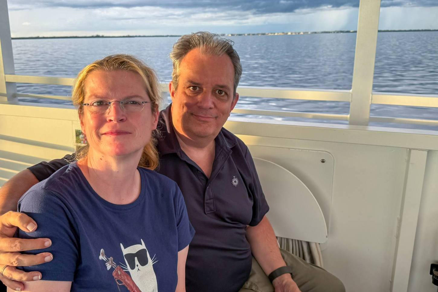 Dann kam der Höhepunkt: Der Sonnenuntergang. Der Captain positionierte das Boot perfekt, drehte langsam, damit jeder die beste Sicht hatte. Der Himmel präsentierte seine Farben – intensives Orange, Pink und Violett spiegelten sich im ruhigen Wasser. Die Silhouetten der Mangroven und ferner Boote machten das Bild perfekt. Ivonne und ich saßen oben auf dem offenen Deck, ein kühles Getränk in der Hand, und genossen diesen friedlichen Moment. Es war eines dieser Erlebnisse, die Florida so besonders machen: Die Natur zeigt sich von ihrer spektakulärsten Seite, ohne viel Aufhebens.