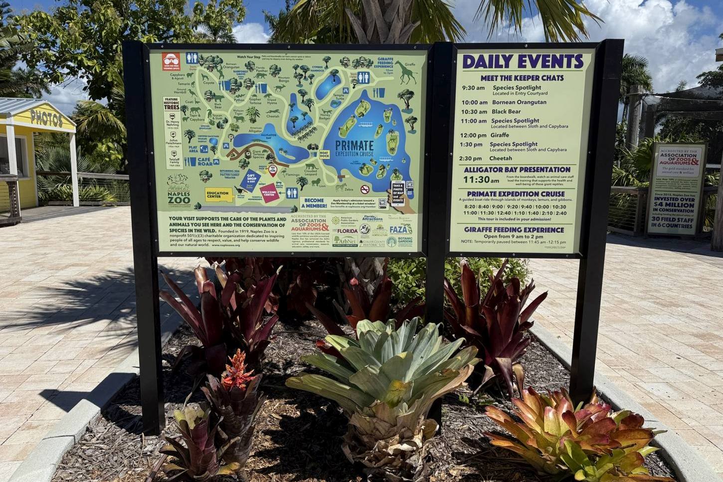 Der Naples Zoo liegt im Herzen von Naples, nur eine kurze Fahrt vom Stadtzentrum entfernt, inmitten eines historischen botanischen Gartens, der bereits in den 1910er Jahren angelegt wurde. Ursprünglich als tropischer Garten konzipiert, wurde er in den 1960er Jahren um Tiergehege erweitert und ist heute ein akkreditierter Zoo mit Fokus auf Naturschutz und Bildung.